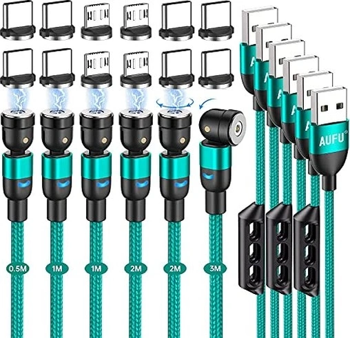 AUFU magnet кабель для зарядки 0.5m/1.0m/2.0m/3.0m green, 6-pack