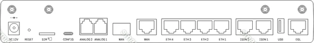 1x Gb WAN, 4x Gb LAN, 1x SFP, 2x Phone analog, 2x ISDN, 1x USB-A 2.0, 1x порт управления (USB-C)
