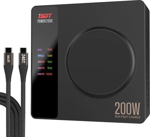1x USB-A (разъем, 24W), 3x USB-C (разъем, 140W), 1x беспроводная зарядка (MagSafe, 15W), макс. 200W