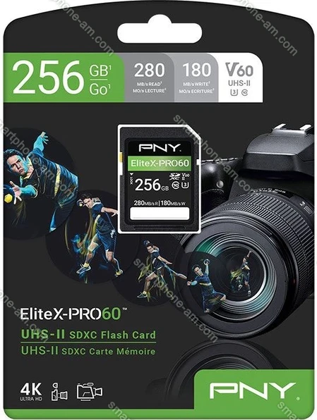 Карта памяти PNY EliteX-PRO 60 R280/W180 SDXC 256GB, UHS-II U3, Class 10 в Ереване: купить недорого, лизинг, кредит, рассрочка, Армения